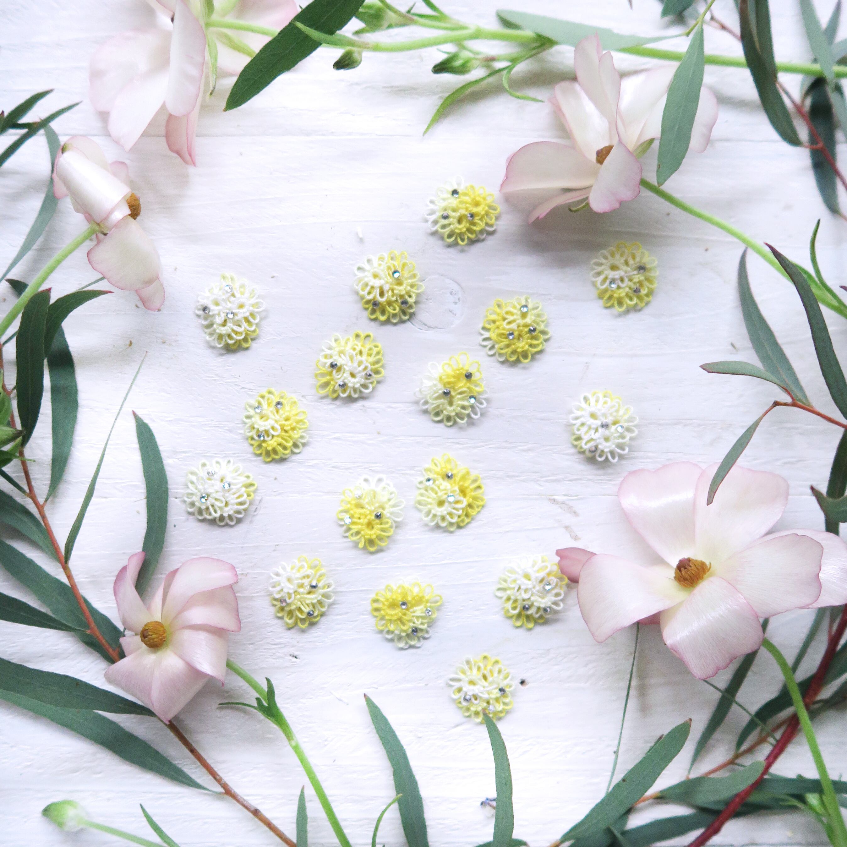 また、小さなクリスタルも散りばめたので、光が当たるときらっとほのかに煌めきます。