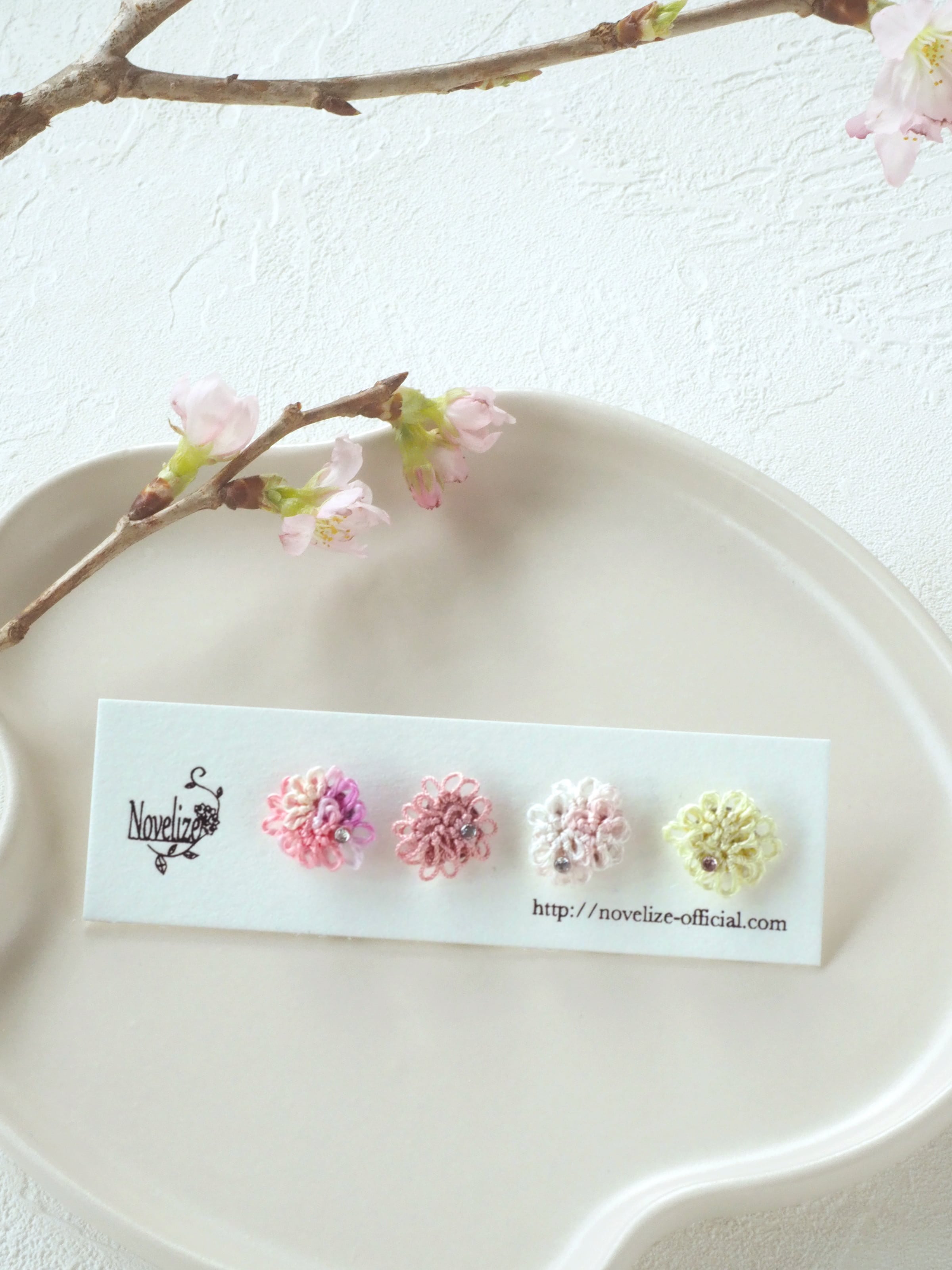 いつもより一回り小さいお花を小粒の耳飾りに仕立てた「Petit」。