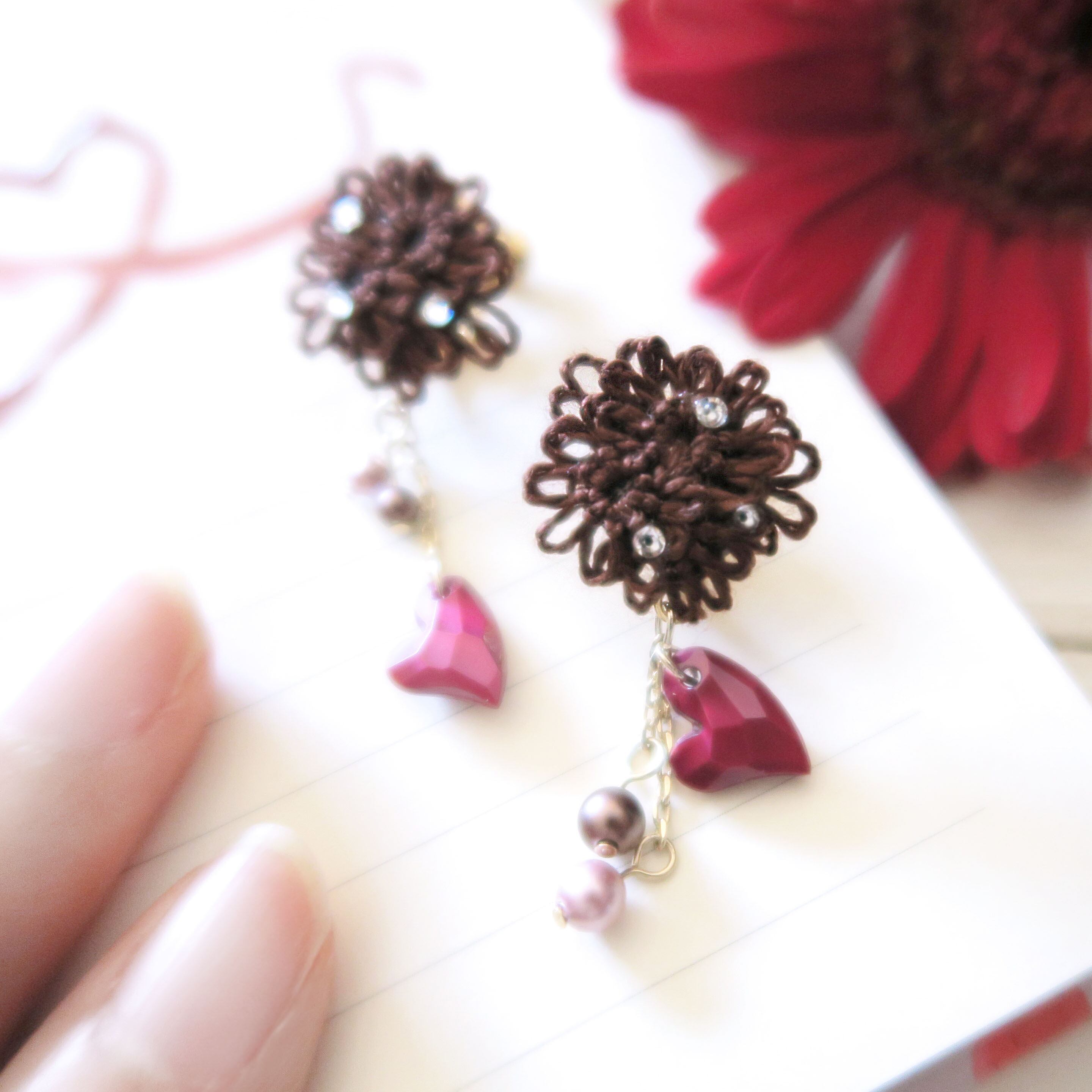 バレンタイン限定【チョコレートコスモス-ビターチョコレート】耳飾り
