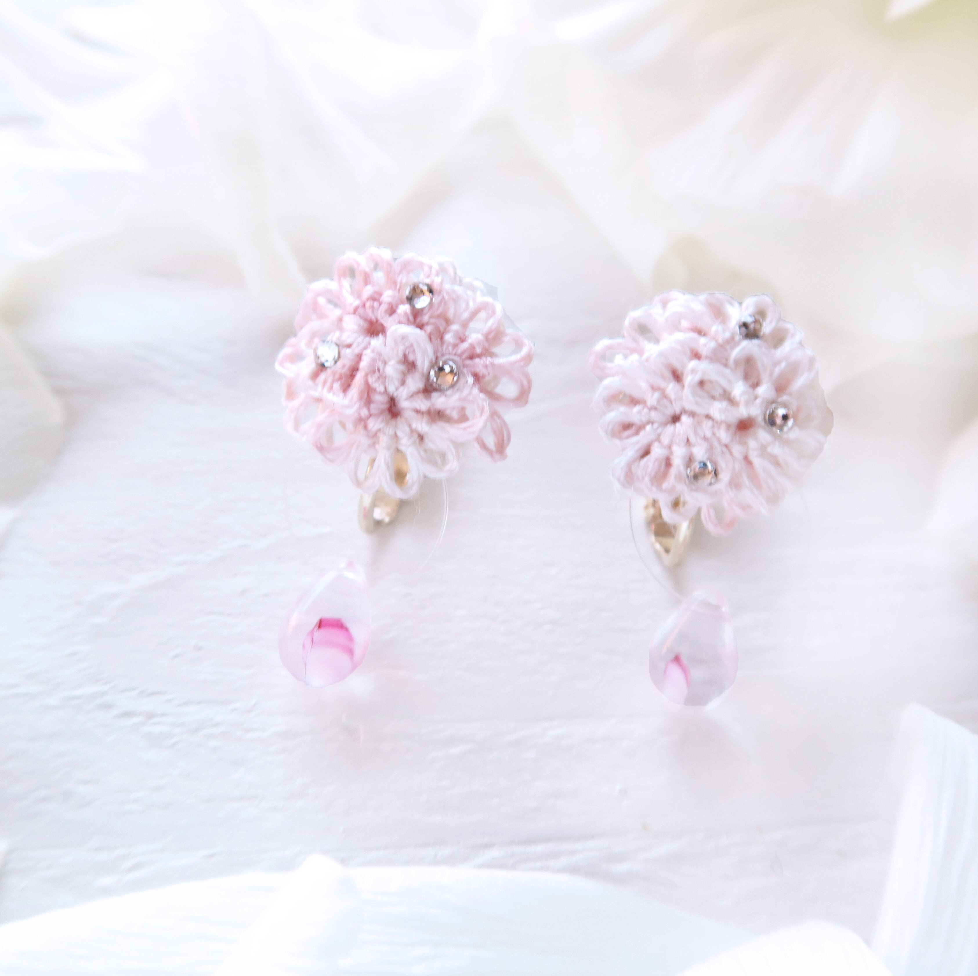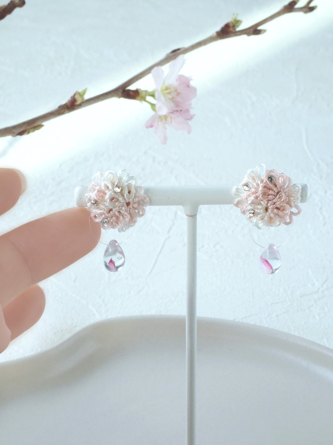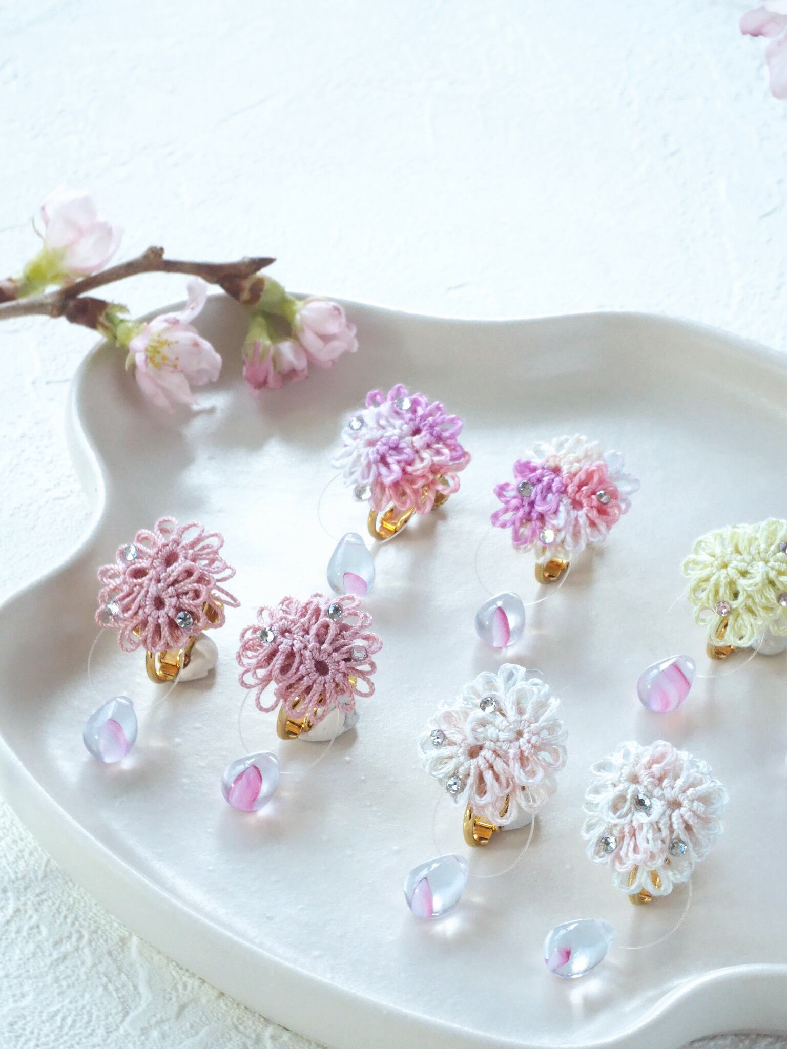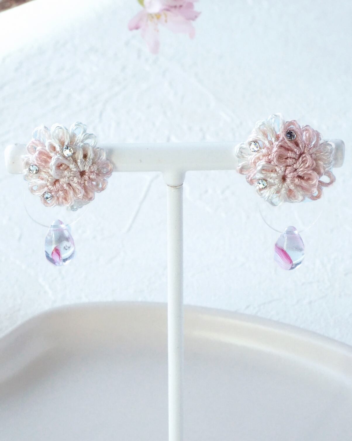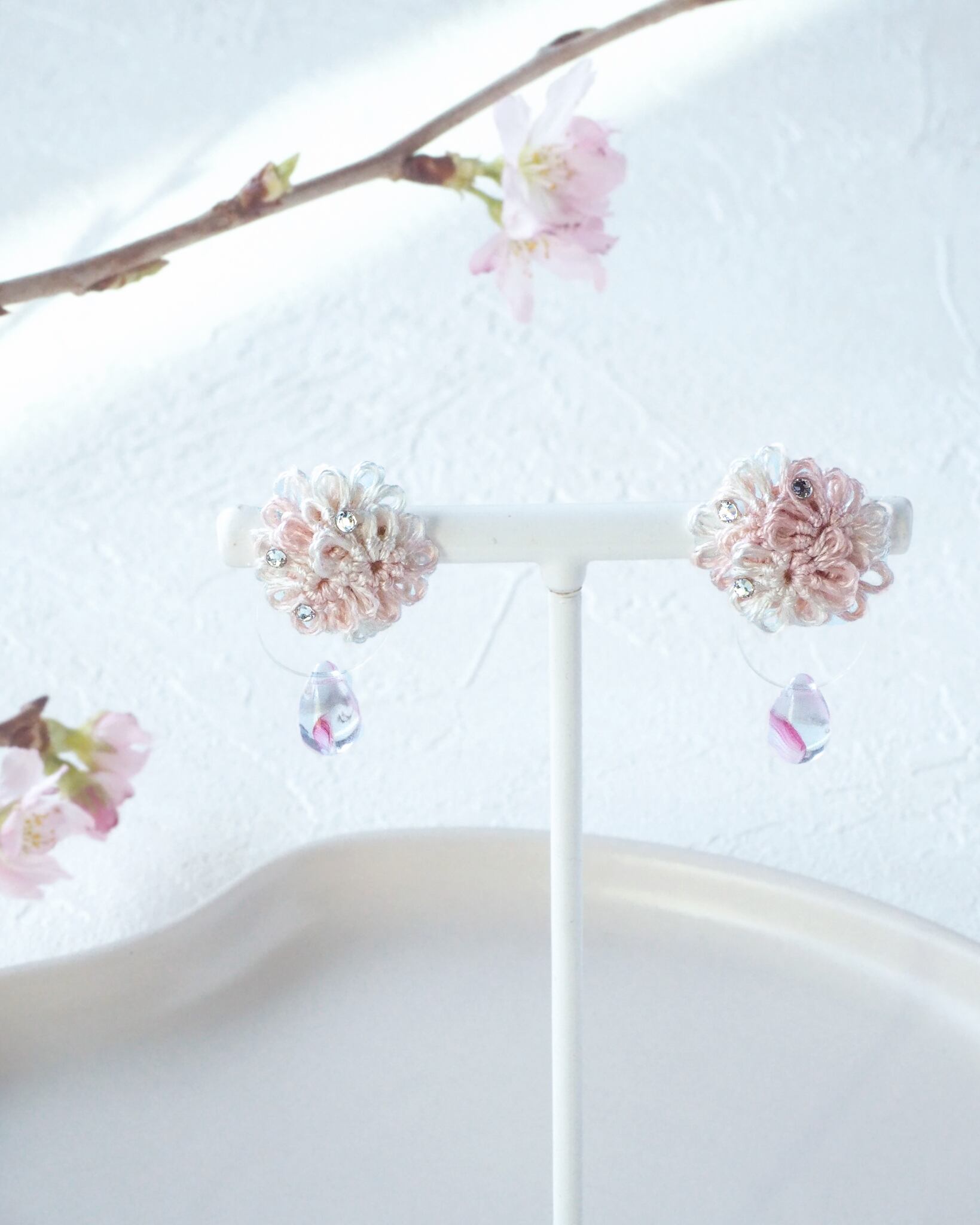 桜の花びらを映した雨のしずくのようなビーズを
