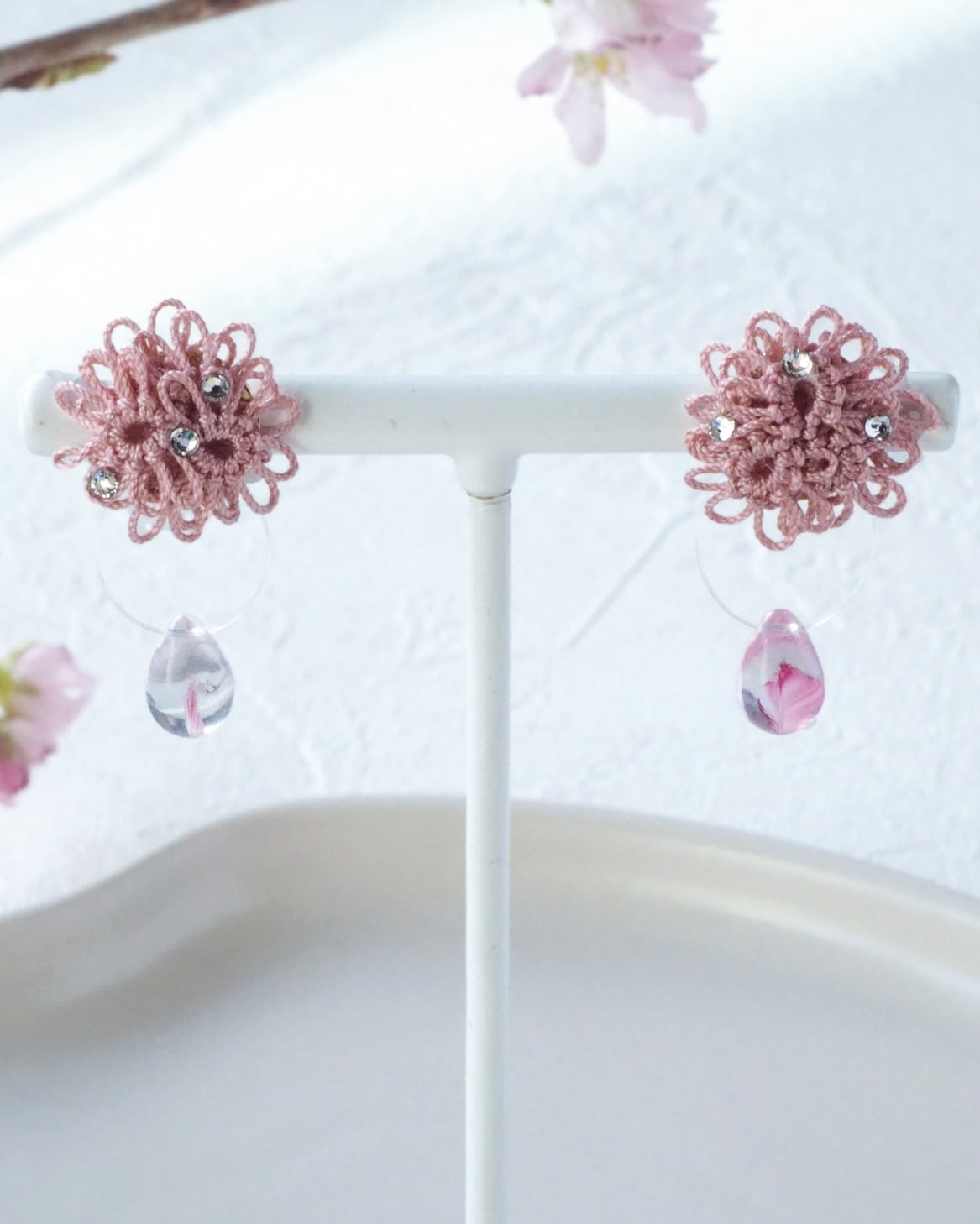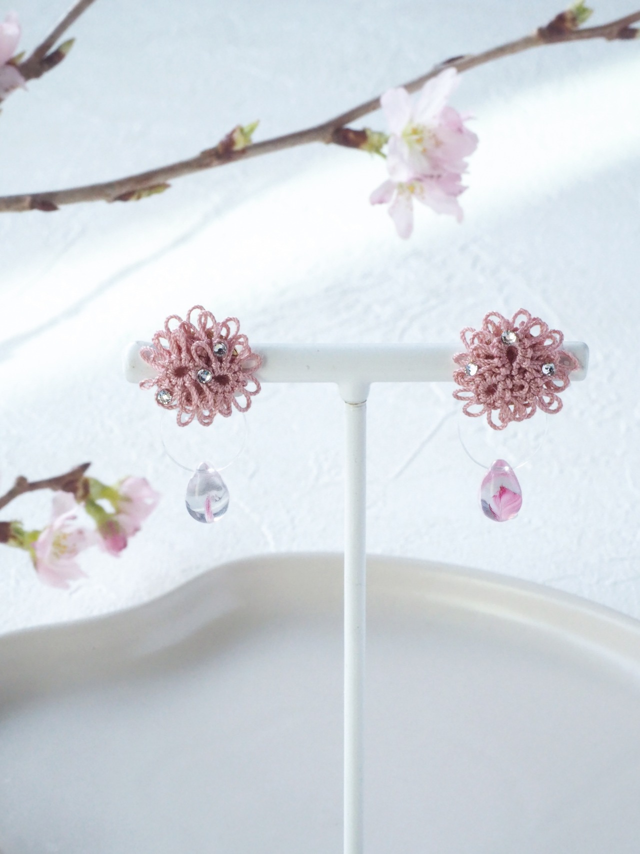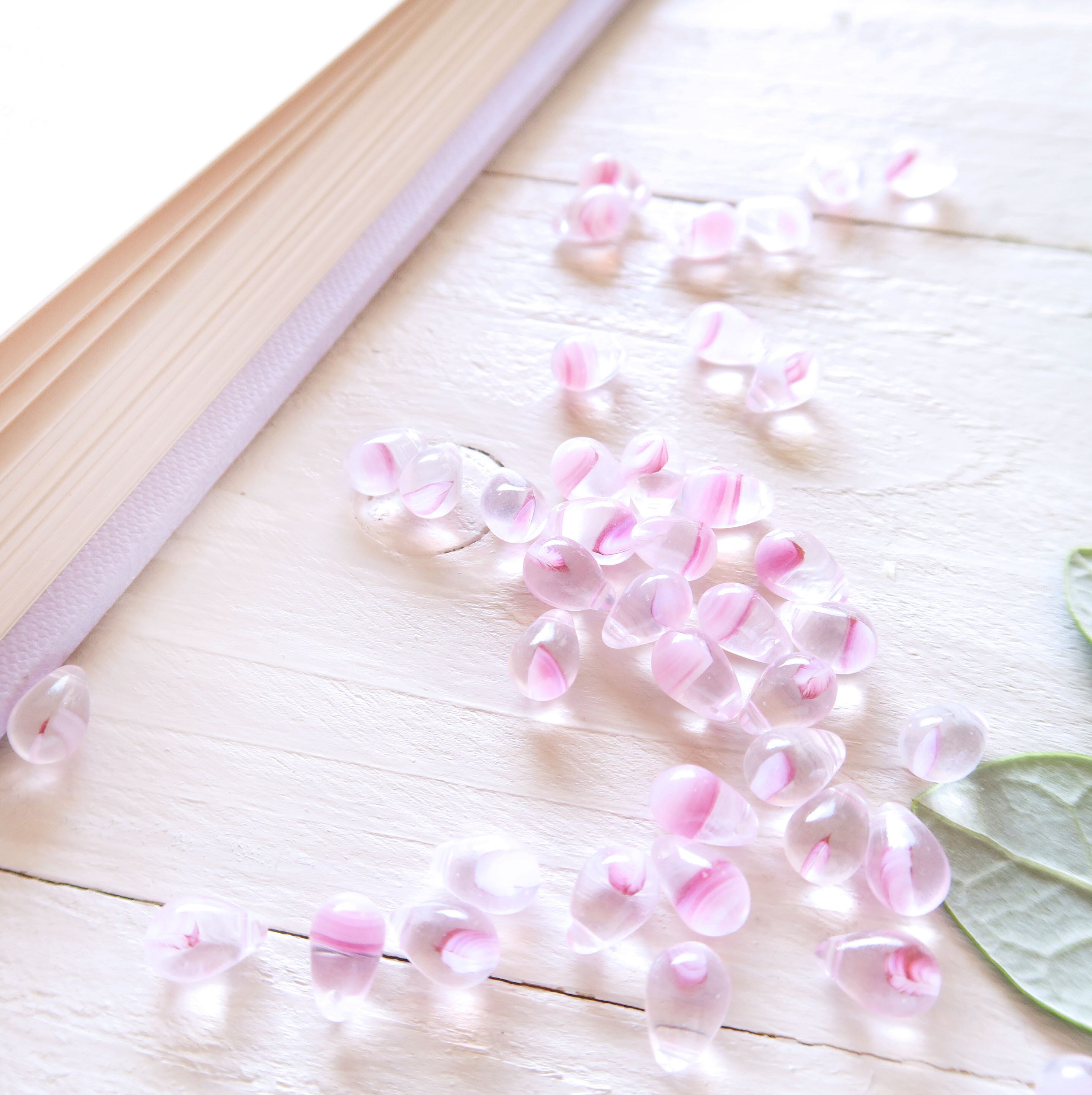 桜の花びらを映した雨のしずくのようなビーズを
