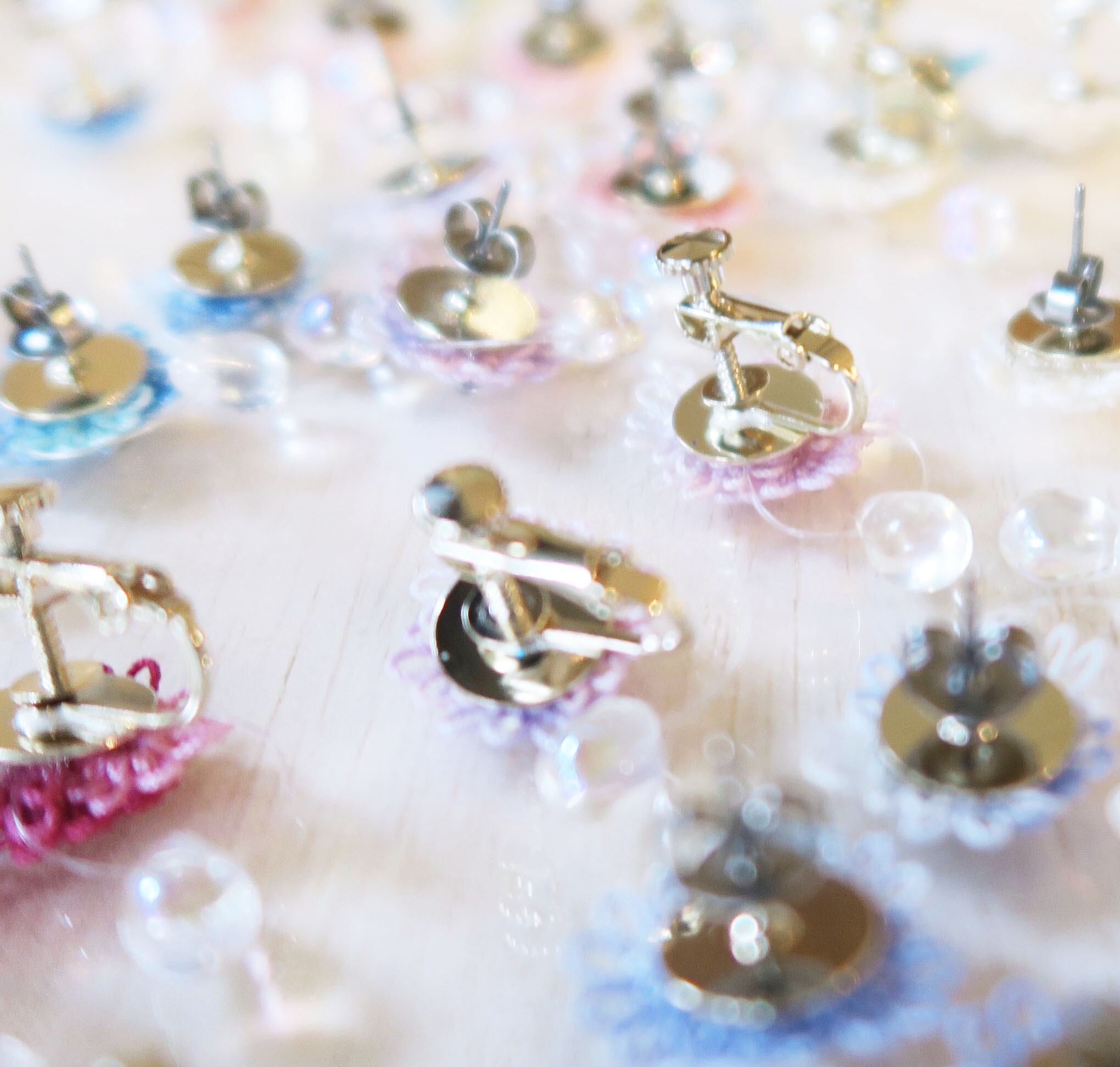 ▶︎イヤリング:ネジバネ式イヤリング、クリップ式イヤリング、ノンホールピアス、国産樹脂クリップ(+500円)